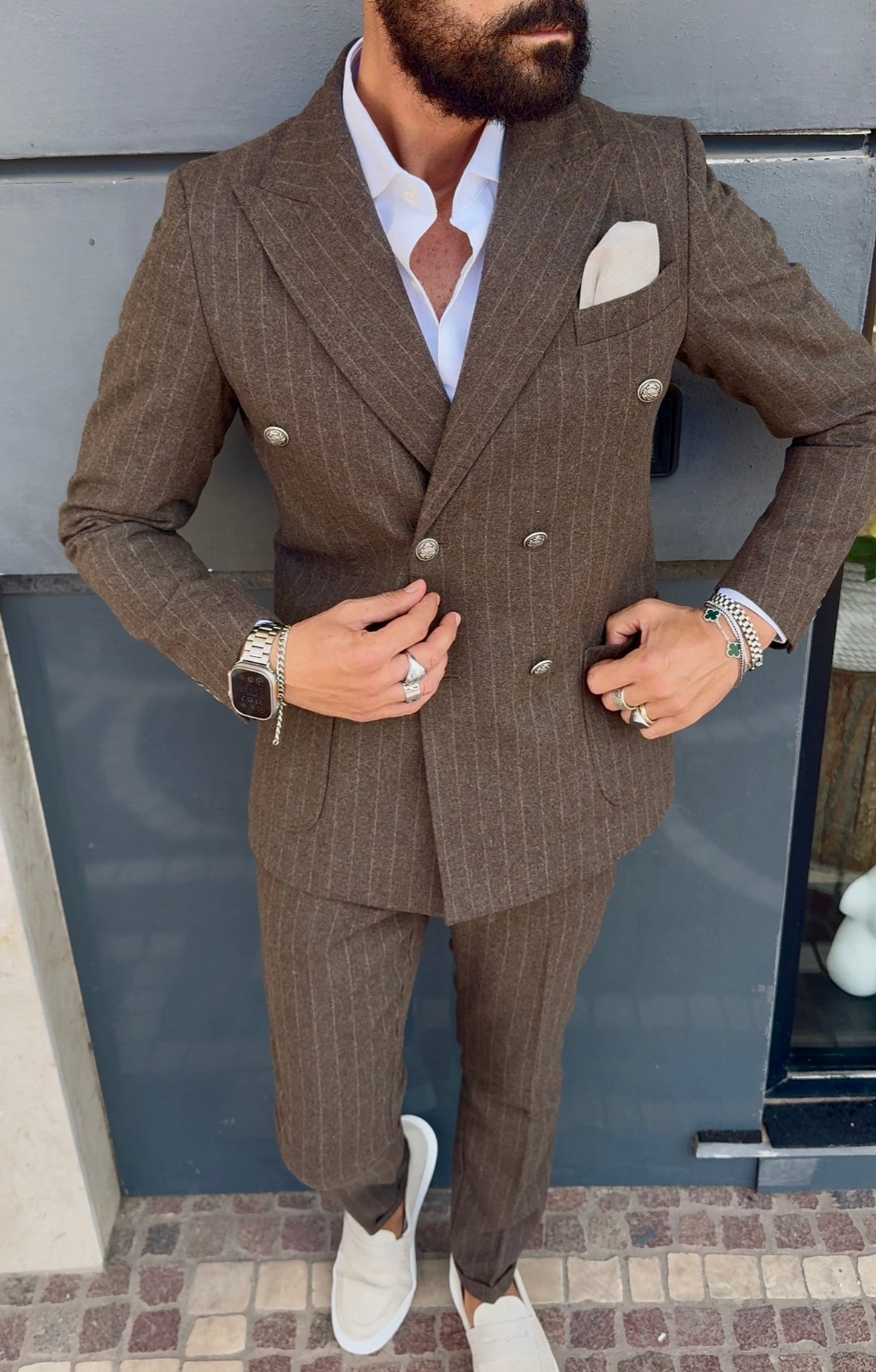 Abito Misto Lana Doppio Petto Bottone Metallo.